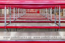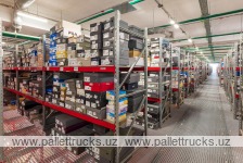 Продукция размещается в ящиках или контейнерах на полках глубиной от 300 до 1200 мм. Для удобной организации хранения также предусмотрены разделители полок и ограничители. Для защиты от случайного падения людей, техники и груза с этажа предусмотрены элементы безопасности.